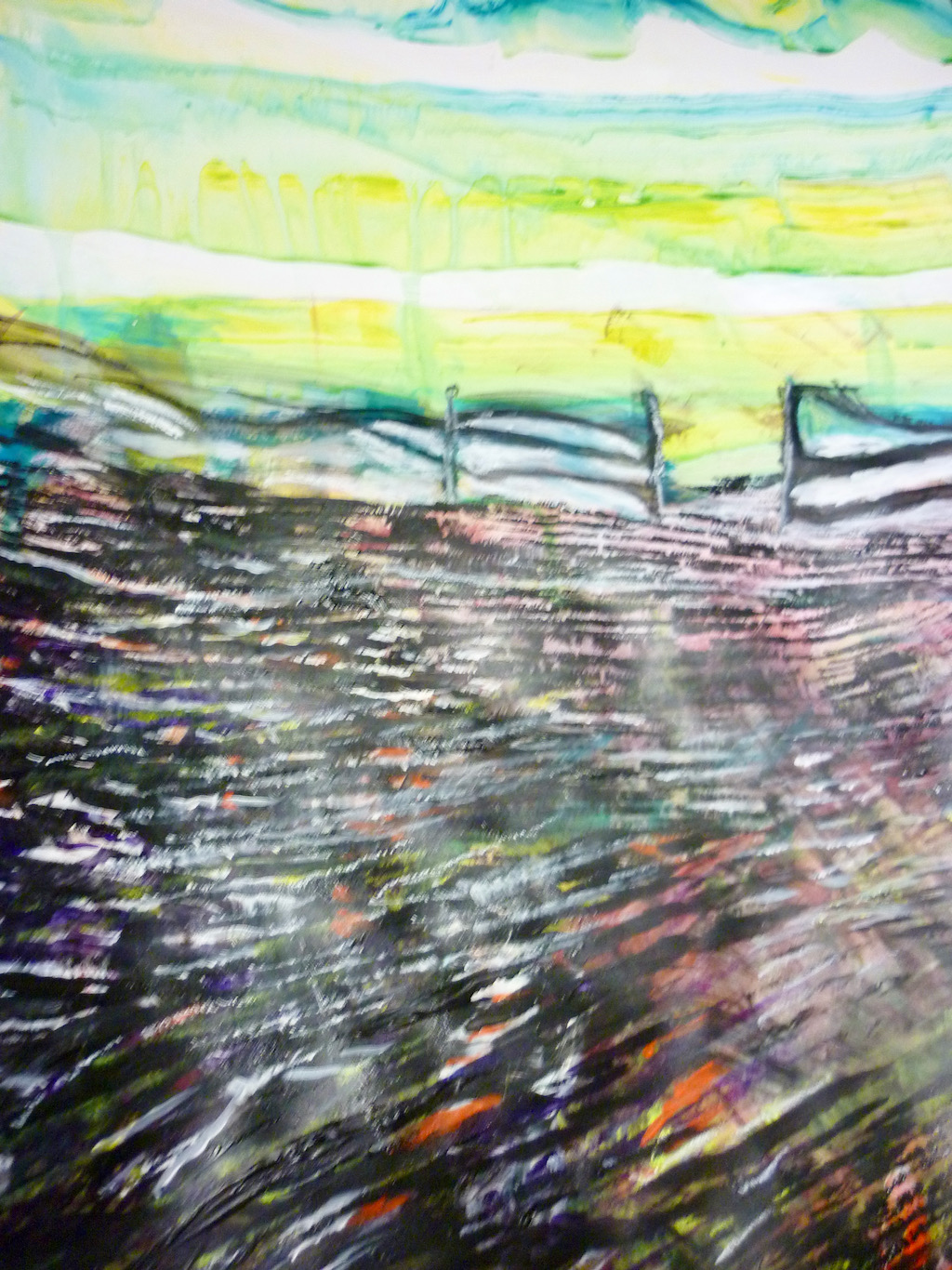 Improvisation: is exactly that. Exploring new ground, putting unexpected materials together, pencil, acrylic, oilpastell, also on canvas.
