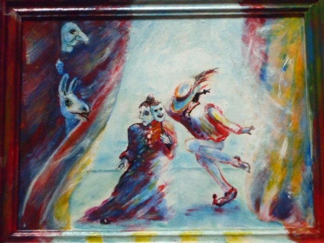They are all painted on wood, surrounded by old wooden frames, which gave me the idea making them into mini Theatres, using such ideas as the Commedia dell’ Arte, or Shakespeare’s A midsummer Night’s Dream, or yet again, The Audition.